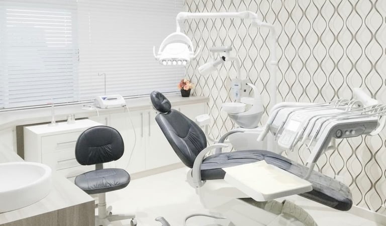 Consultório moderno e acolhedor, situado em área central da cidade de Franca, SP, para sua comodidade e segurança.